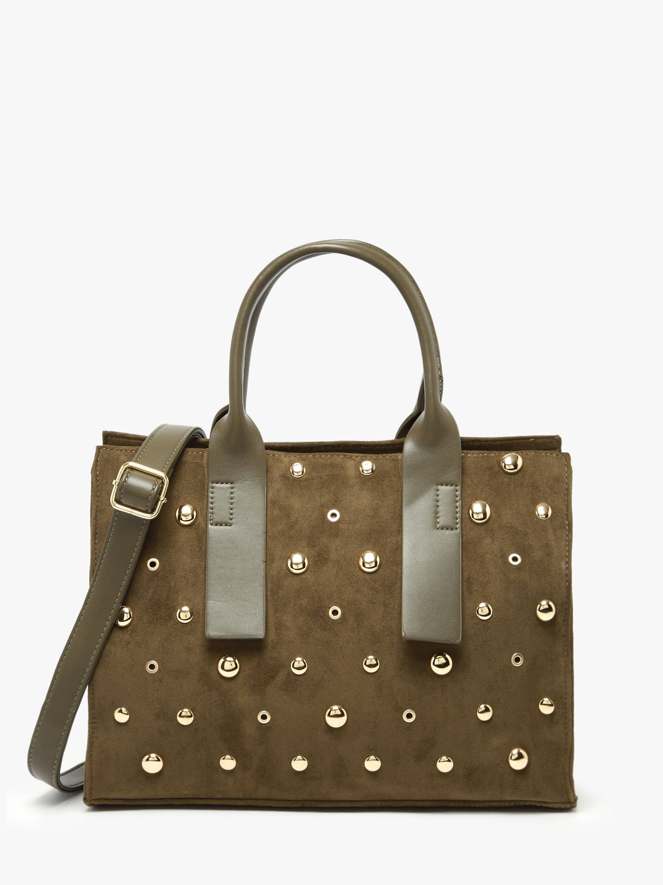 This A4 Stud David Jones handbag, crafted from durable synthetic material, combines modern elegance, functionality, and versatility. Its zip closure secures your belongings while adding a contemporary touch to its sleek design. The two side pockets and back pocket provide quick access to essentials, while the adjustable, removable shoulder strap and 13 cm handle allow for hand or crossbody wear according to your needs. Inside, a main compartment, two slip pockets, and a zip pocket ensure optimal organization for documents, phone, and other essentials. Compact yet spacious enough for A4 items, this bag stands out with modern lines, refined finishes, and lightweight design, adding sophistication to any outfit. Versatile and practical, it accompanies city days, professional appointments, or outings, combining style, comfort, and functionality.