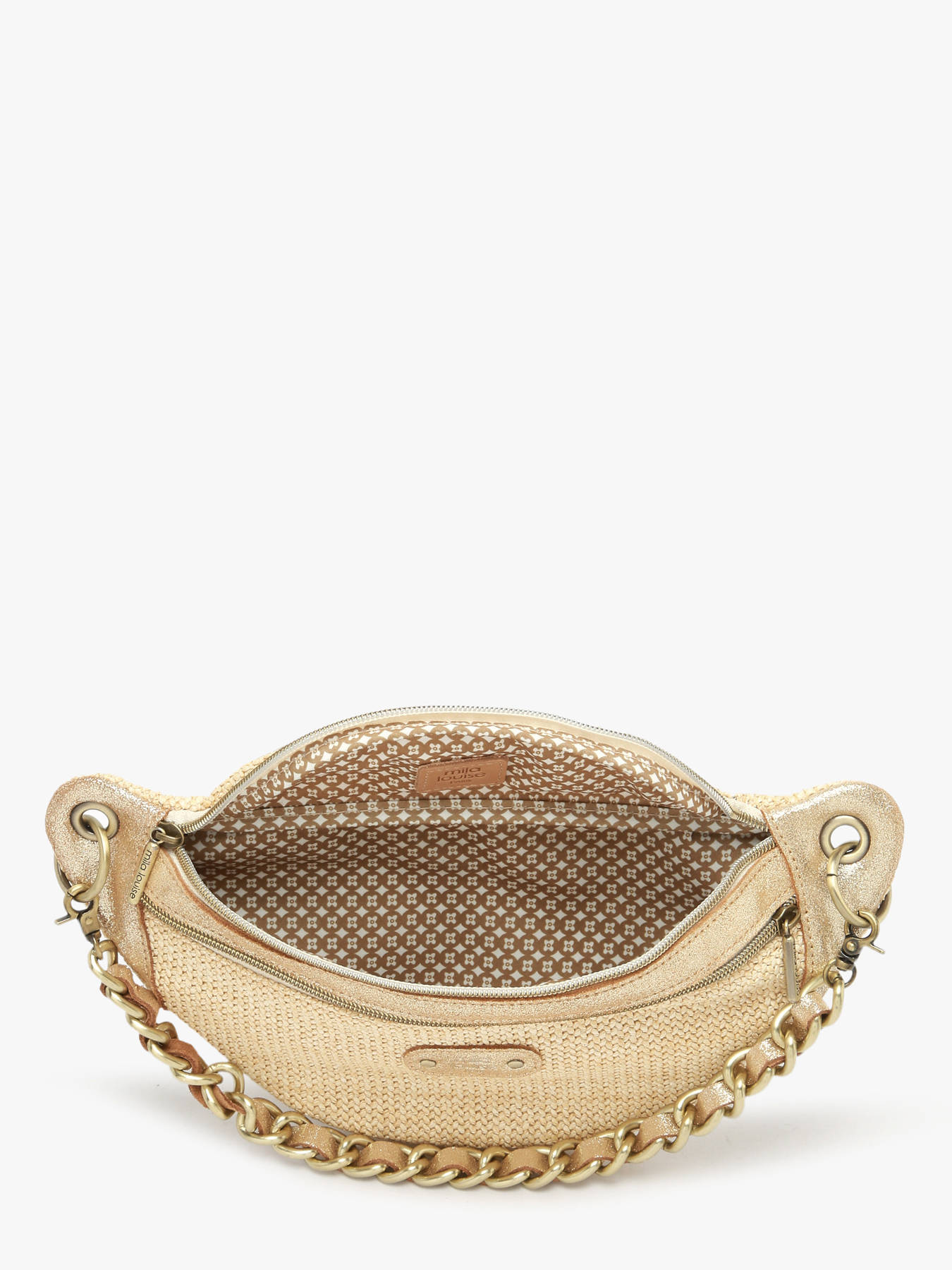 The CM MILA LOUISE waist bag, crafted from raffia with leather trim, combines natural elegance and practicality for everyday use or outings. Its exterior features a front pocket and a back pocket, along with a secure zip closure, ensuring protection of your belongings while providing easy access. With a 16 cm handle height and an adjustable, removable strap, it can be worn crossbody, at the waist, or across the chest according to your preference. Inside, a single compartment provides space for essentials such as a phone, wallet, or small accessories, keeping them organized. Compact, practical, and refined, this CM MILA LOUISE bag stands out with quality materials and a sleek design, adding a chic and natural touch to your outfits while combining style and functionality for any occasion.