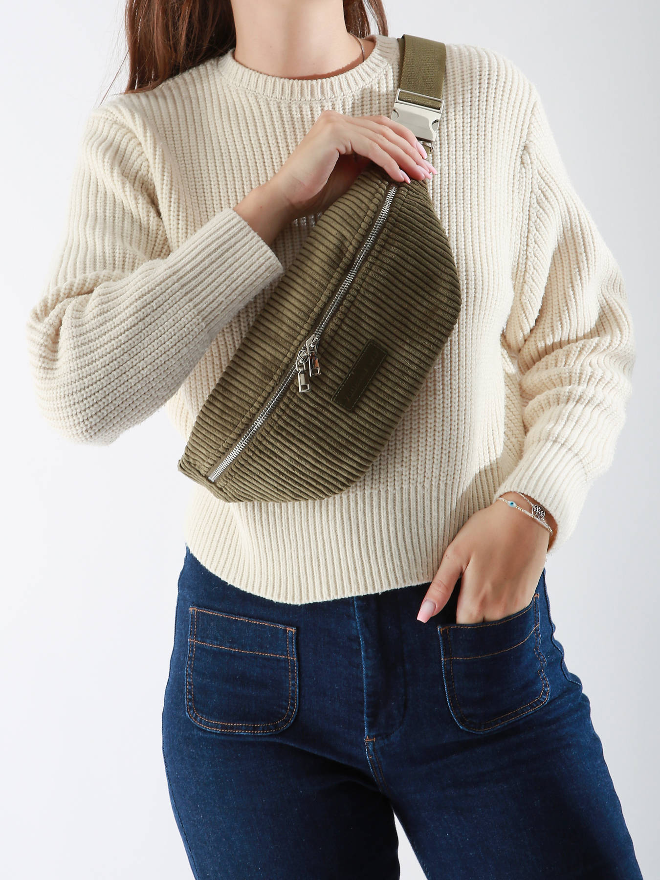 The Vanessa Wu belt bag, made of textile, is a trendy and practical accessory. Featuring a zip closure, it keeps your belongings secure while being easy to access. Its adjustable strap allows you to wear it either at the waist or across the chest, providing great versatility based on your needs. Inside, there's a single compartment with a zippered pocket, perfect for organizing your essentials. This belt bag combines modern style and functionality, making it ideal for city outings or casual occasions.