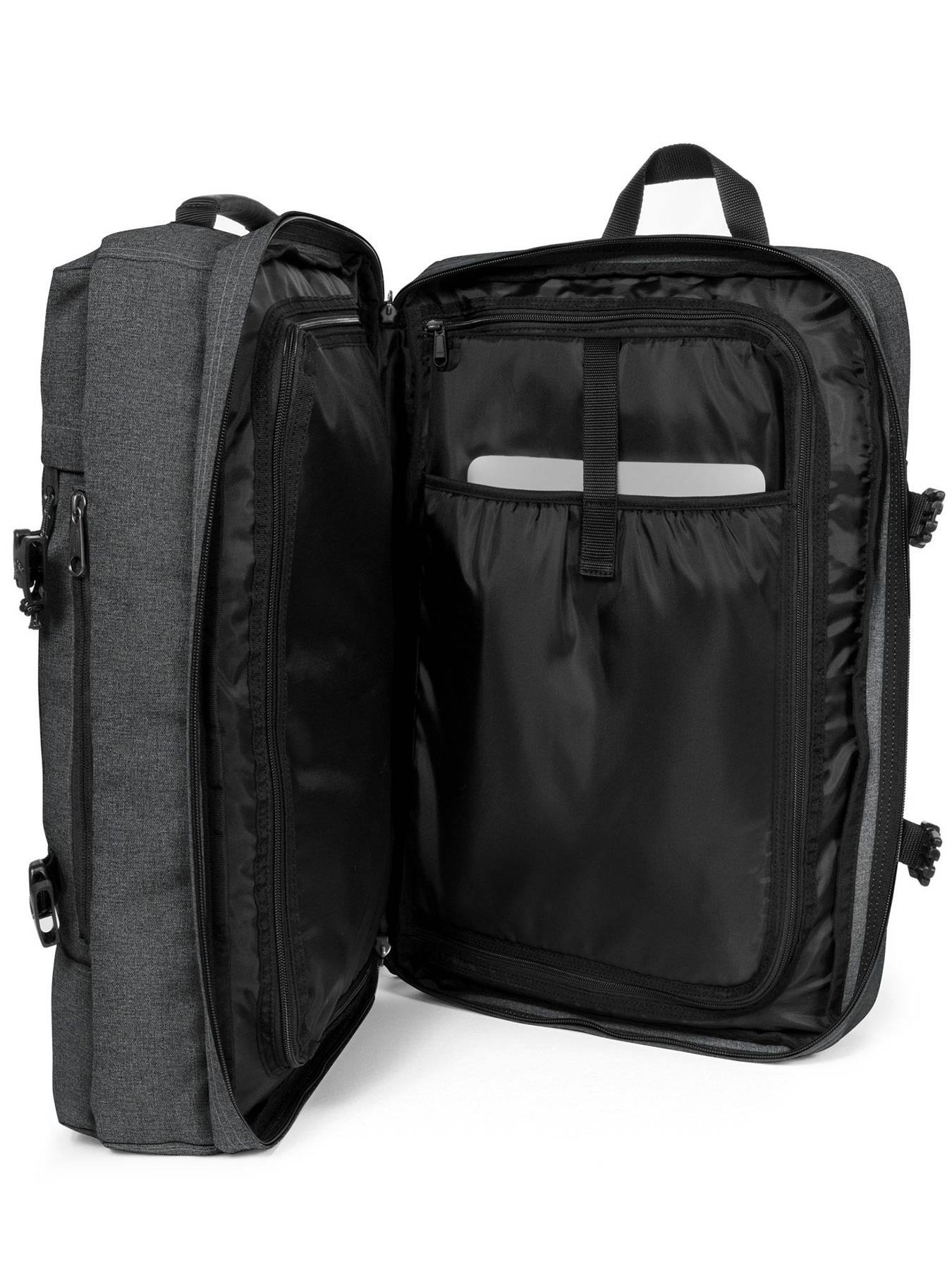 Equipped with padded shoulder straps and two handles, you can choose to carry this Eastpak travel bag on your back or in your hand as you wish. Thanks to its dimensions respecting the standards of cabin luggage, you will be able to take the plane with this Eastpak travel bag.