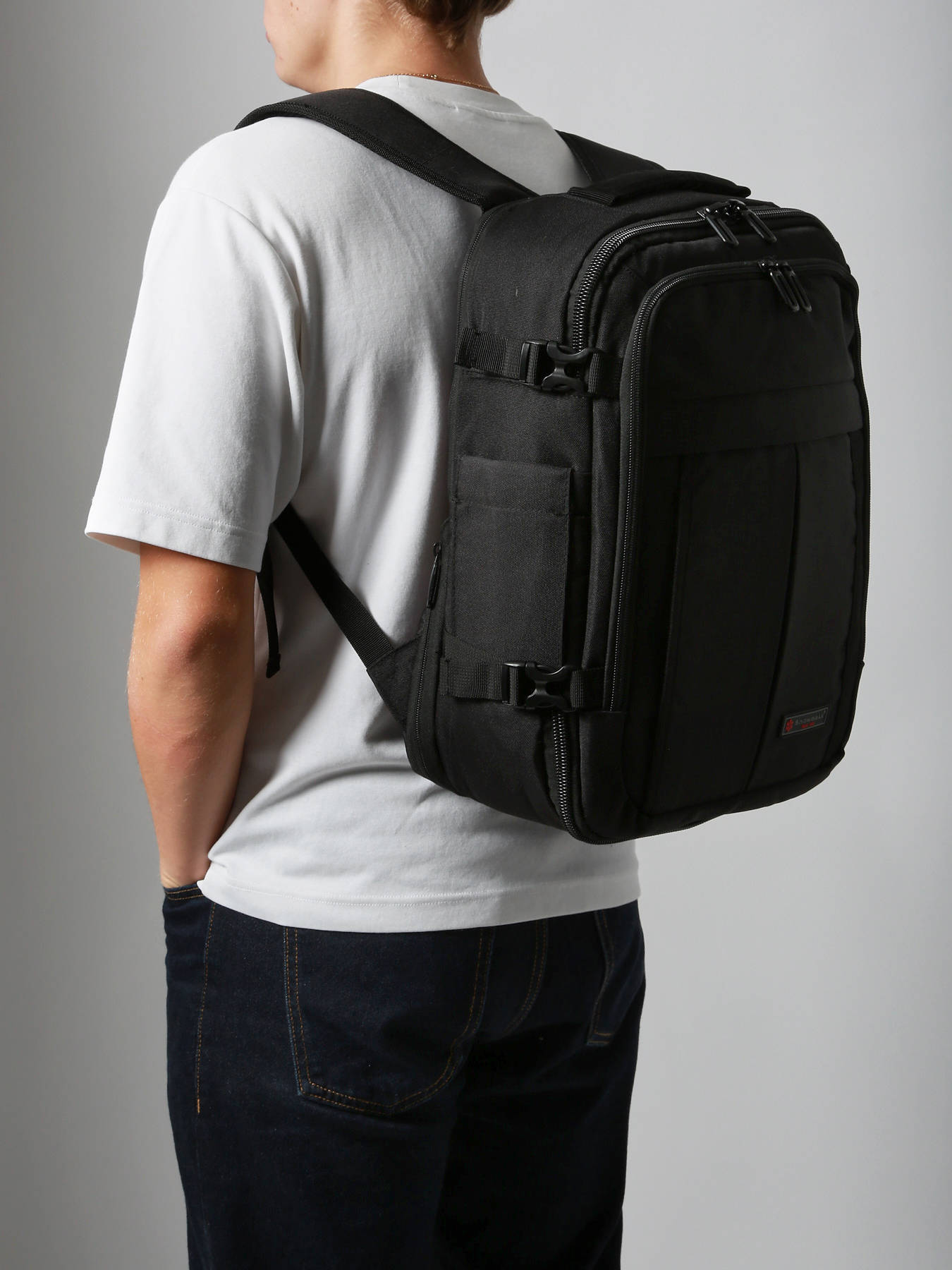 The Snowball backpack is the perfect choice for light and smart travel, whether by plane or train. With its compact size (40 × 30 × 15 cm), it fits as an underseat bag on most low-cost airlines. Its expandable gusset increases capacity up to 22 L, ideal for an extra overnight stay. The U-shaped zip opening offers suitcase-style packing, with adjustable straps to secure clothing and a mesh pocket for toiletries or essentials. Organization is simple with a padded sleeve for a 14’’ laptop, a large front pocket for documents, a discreet back pocket for passport and valuables, and a side bottle holder. Comfort is ensured with padded shoulder straps, cushioned back panel, and two soft handles. It can also be attached to a trolley for easy transport. Reflective details, compression straps, reinforced base and lockable zippers make it a smart and affordable travel companion.