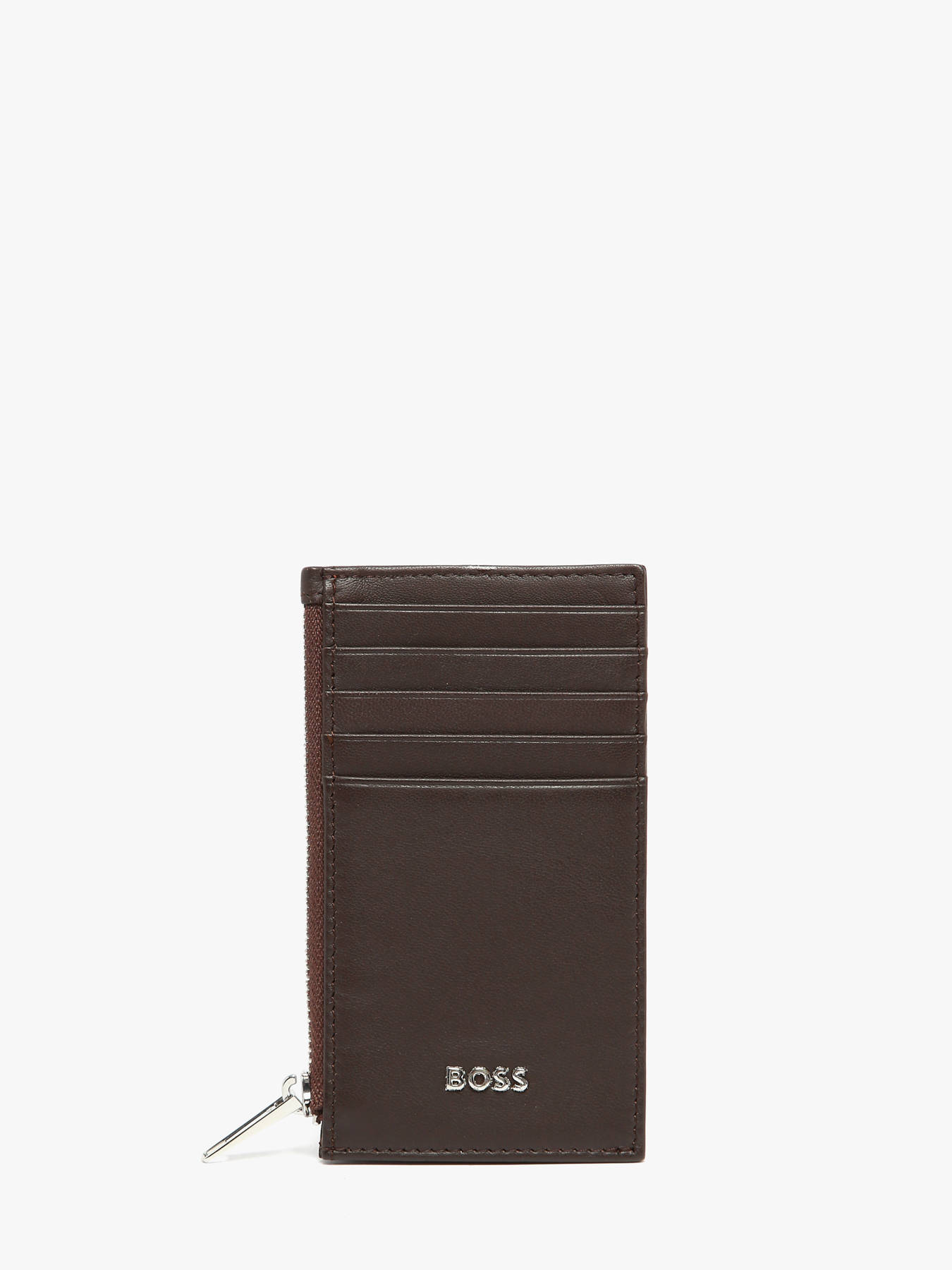 The Hugo Boss Smooth card holder combines elegance, practicality, and protection for your everyday essentials. Crafted from soft, smooth lamb leather, it offers a pleasant, durable, and refined texture that develops a subtle patina over time. The exterior features a zippered main pocket providing secure storage for your belongings, along with five front slots for quick access to frequently used cards. Compact and lightweight, it fits easily into a pocket or bag while maintaining a contemporary and sophisticated look. Perfect for daily use, this card holder reflects Hugo Boss’s premium style and craftsmanship, offering a practical and elegant accessory that blends functionality with refined design.
