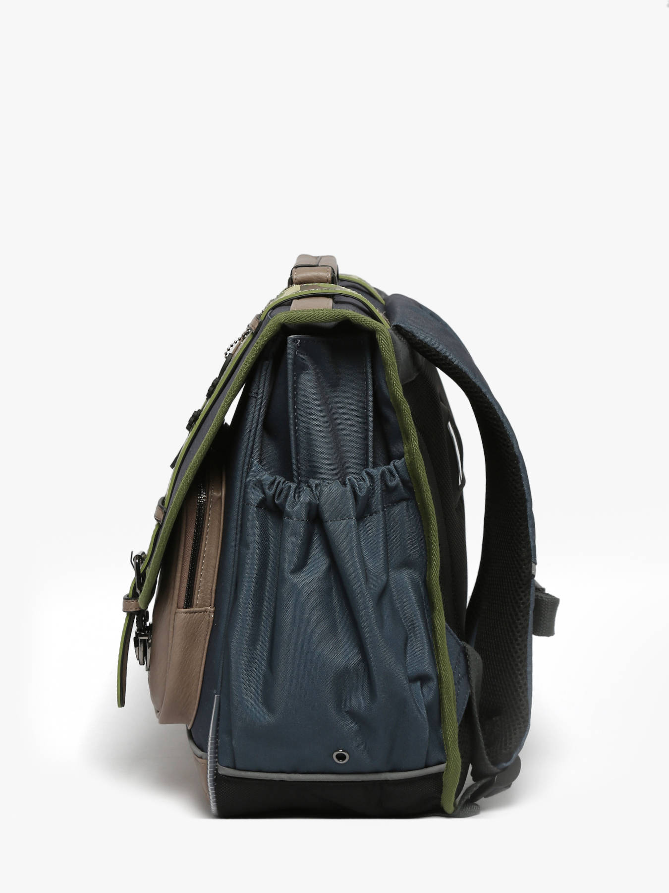 41 cm - 24 litres - 1.33 kg ~ Cartable enfant primaire 41 cm signé Caméléon de la ligne Vintage Urban. Ce cartable enfant convient parfaitement pour le CM1 et le CM2. Il se divise en trois grands compartiments pour l'ensemble des affaires d'école. Fonctionnel, il dispose d'un emplacement spécial gourde et de trois poches à fermeture éclair sur le devant du cartable. Petit plus, ce cartable dispose d'une étiquette nom. Ergonomique, la poignée et le fond du cartable sont renforcés. Très confortable, le dos et les bretelles sont rembourrés. Ce cartable est fabriqué en polyester recyclé imperméable. Côté sécurité, des bandes réfléchissantes sont disposées autour du cartable enfant. Petit plus, une règle est offerte !