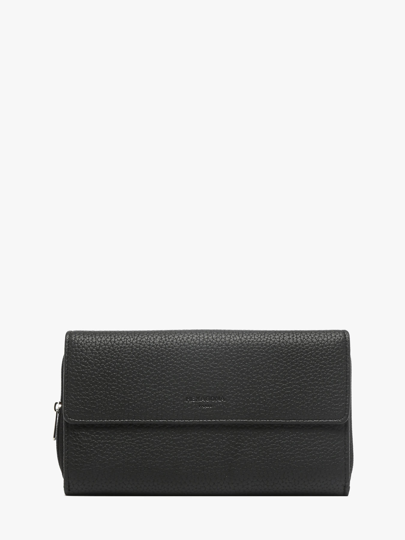 At Edisac, we offer you this Hexagona all-in-one from the ""Madrid"" line for its strong points: its grained synthetic material, its synthetic lining, its shiny gunmetal finish, its snap flap closure and its zipper closure. In addition, you should know that this piece also has inside a flap, a main compartment, a zipped wallet, six flat pockets (three of which have a transparent view), six card slots and a checkbook space. Finally, this accessory is compatible with credit cards, national identity card, driver's license, passport, car registration card and checkbook.