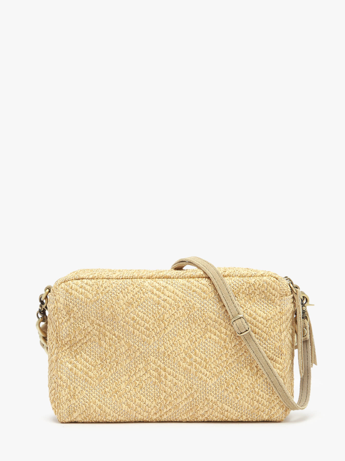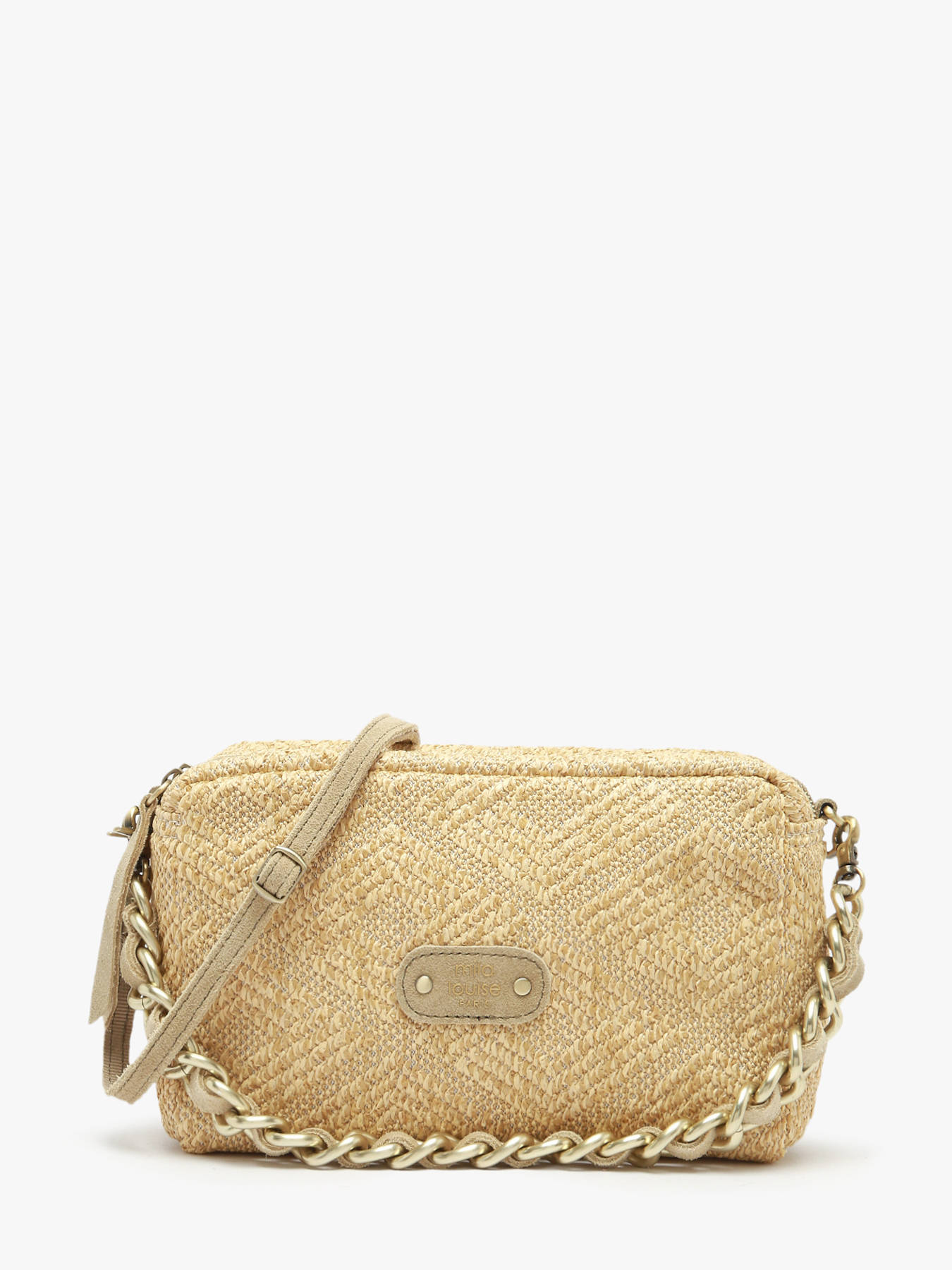 The CM2 MILA LOUISE crossbody bag, crafted from raffia with leather trim, combines natural elegance with contemporary practicality. Its exterior features a secure zip closure and a 15 cm handle, while the adjustable and removable strap allows versatile wear, by hand or over the shoulder. Inside, two compartments and two zip pockets provide optimal organization for essentials such as your phone, wallet, keys, and small accessories. Lightweight and refined, this CM2 MILA LOUISE bag stands out with its elegant design and natural materials, adding a chic and sophisticated touch to any outfit. Perfect for everyday use or outings, it combines style, organization, and comfort, making it a practical and trendy essential.