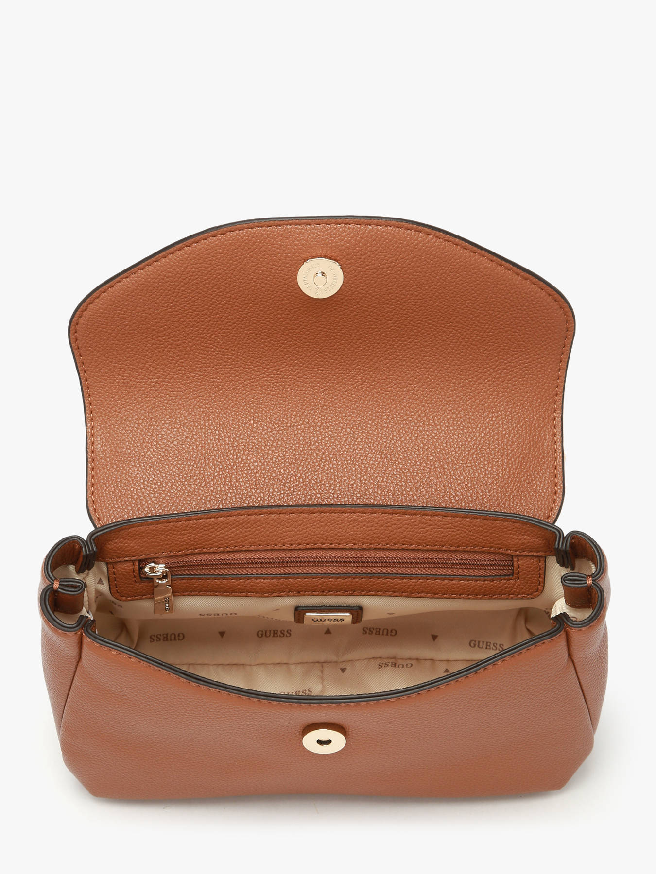 The EVIE GUESS handheld bag, made of P.U., combines elegance and practicality. The exterior features a flap with a magnetic closure for easy and secure access. It includes a back pocket, perfect for keeping essentials within reach. The handle height is 4 cm, ideal for stylish handheld carrying, while the adjustable and removable shoulder strap allows for crossbody wear as desired. Inside, the bag offers a single compartment with two simple pockets and one zippered pocket, enabling organized storage of your personal items. The EVIE is a versatile and chic accessory, perfect to complement all your outfits.