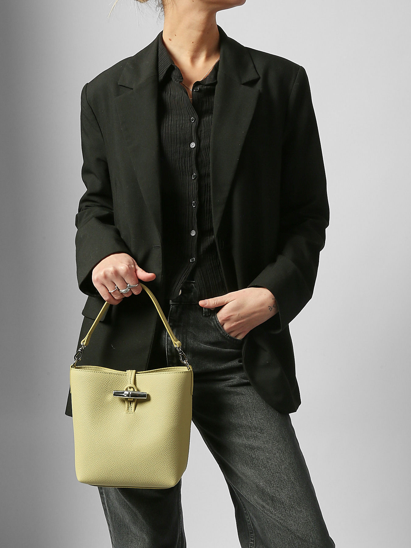 This XS Le Roseau bucket bag in grained calf leather combines elegance and versatility. Featuring an adjustable and removable shoulder strap and a 16 cm handle, it can be worn crossbody, on the shoulder, or carried by hand, adapting effortlessly to your style. Its iconic Bamboo clasp shines like a jewel, adding a refined and feminine touch to the bag. The clean, graphic lines highlight the supple leather, which beautifully develops character over time. A symbol of the Maison’s artisanal craftsmanship, Le Roseau embodies both tradition and modernity in a timeless silhouette.