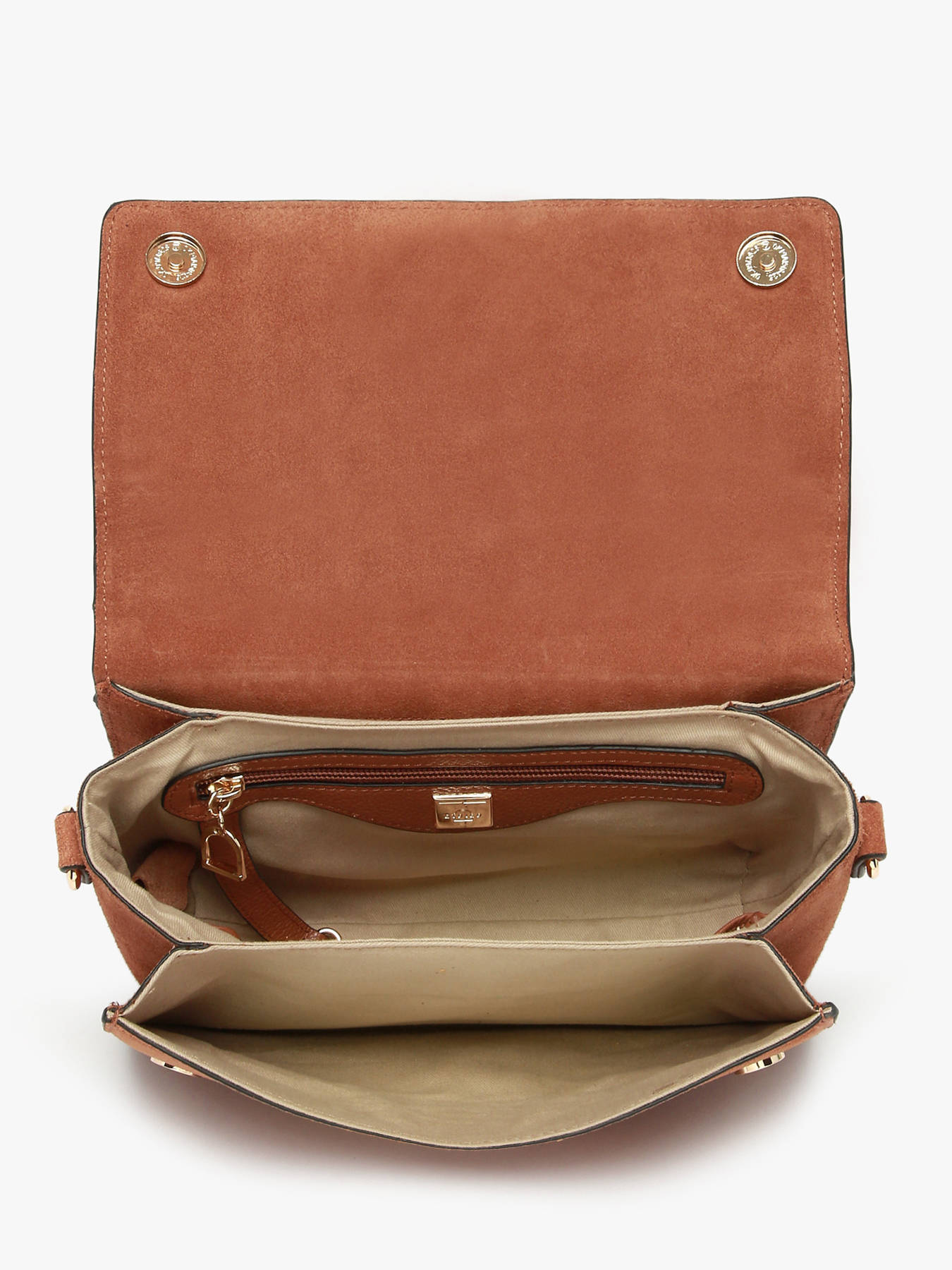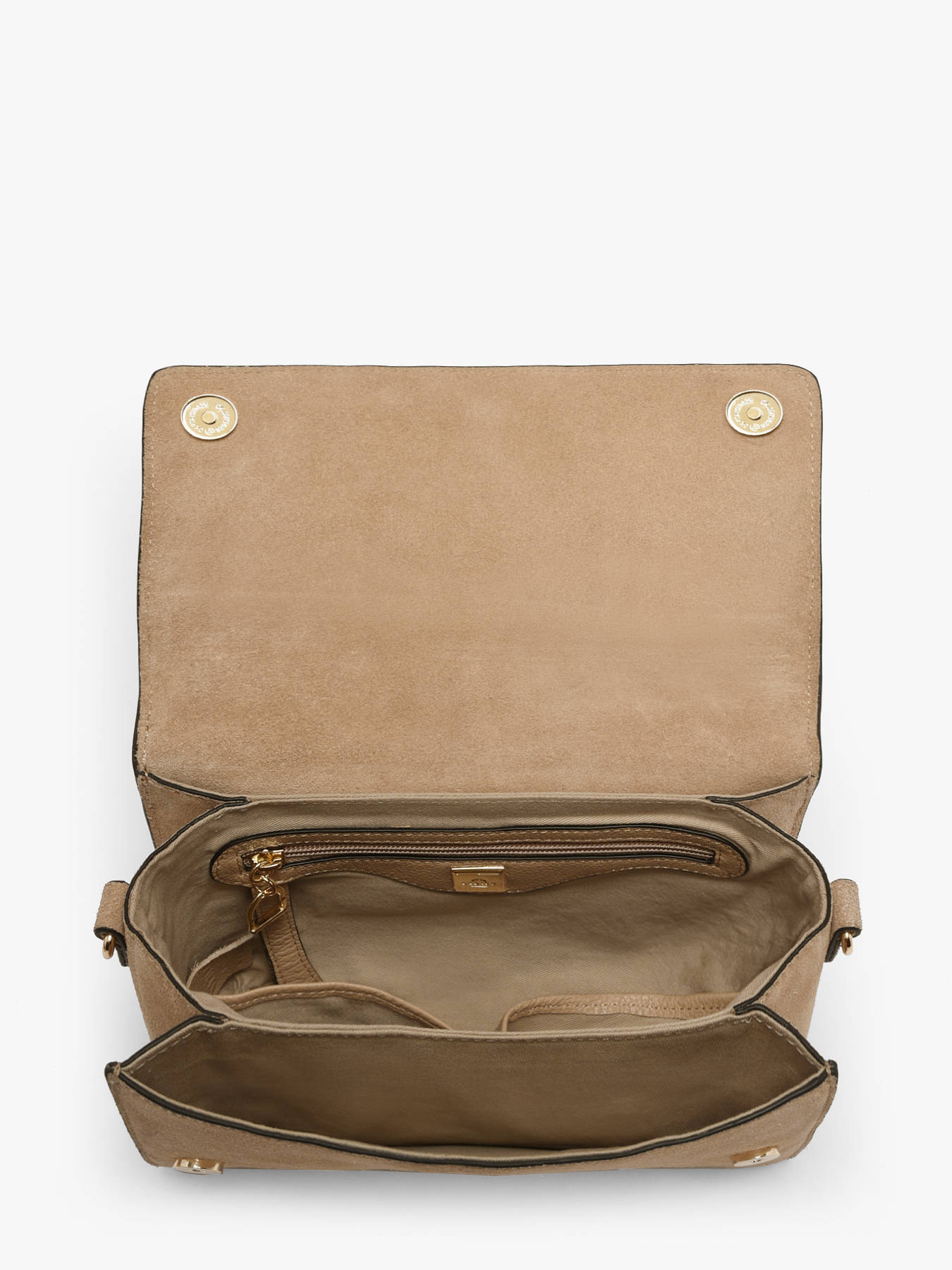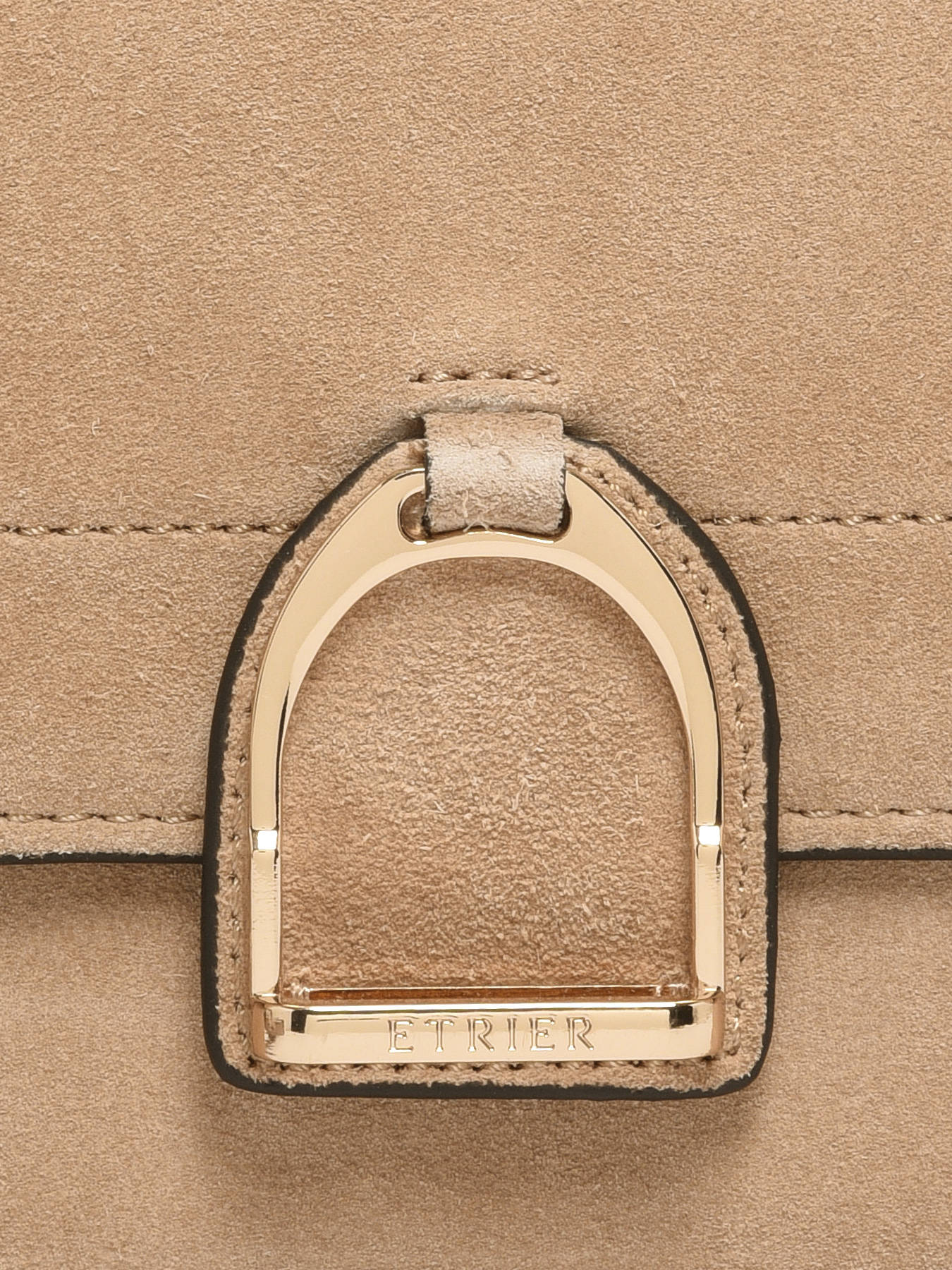 The ETRIER crossbody bag from the ALTESSE SUEDE line comes in its model M, the largest size. This new winter edition of our iconic line features velvety leather with a soft, warm touch, blending timeless elegance with a ""Highlander Cowboy"" spirit. The back of the bag is made of grained leather, providing better durability. It features a magnetic flap adorned with the gold-tone Etrier emblem, a small handle for a refined handheld carry, and an adjustable, removable strap for versatile styling.