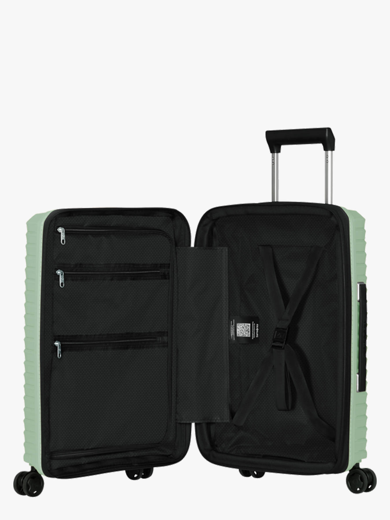 Combining lightness, comfort, and a modern look, the Upscape 55 cm cabin suitcase by Samsonite is perfect for short trips and air travel. Made from durable polypropylene, it weighs just 2.2 kg while offering an expandable capacity from 39 to 45 L to suit your packing needs. Its four shock-absorbing suspension wheels ensure smooth and quiet movement. The case features a TSA lock, multi-stage telescopic handle, top and side carry handles, and an integrated luggage tag. Inside, you'll find a top compartment with a zippered divider, a lower section with securing straps, and a removable, hand-washable lining. Practical, stylish, and functional, Upscape makes traveling a truly comfortable experience.