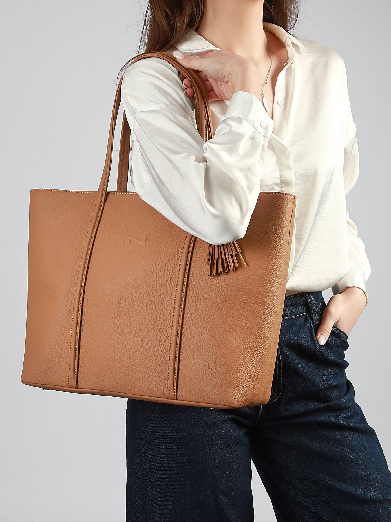 The Cabas shoulder bag by Nathan Baume will quickly become your everyday companion. Thanks to its large size, you can carry all your daily essentials, a computer, a tablet, a scarf, an A4 document and a small snack for example. This bag is made of high quality leather so that you can keep it as long as possible. It has 2 handles with a pompom, as well as a zip for its large compartment, which itself has a zipped divider, a zipped pocket and 2 single pockets. This chic and trendy bag will never leave you.