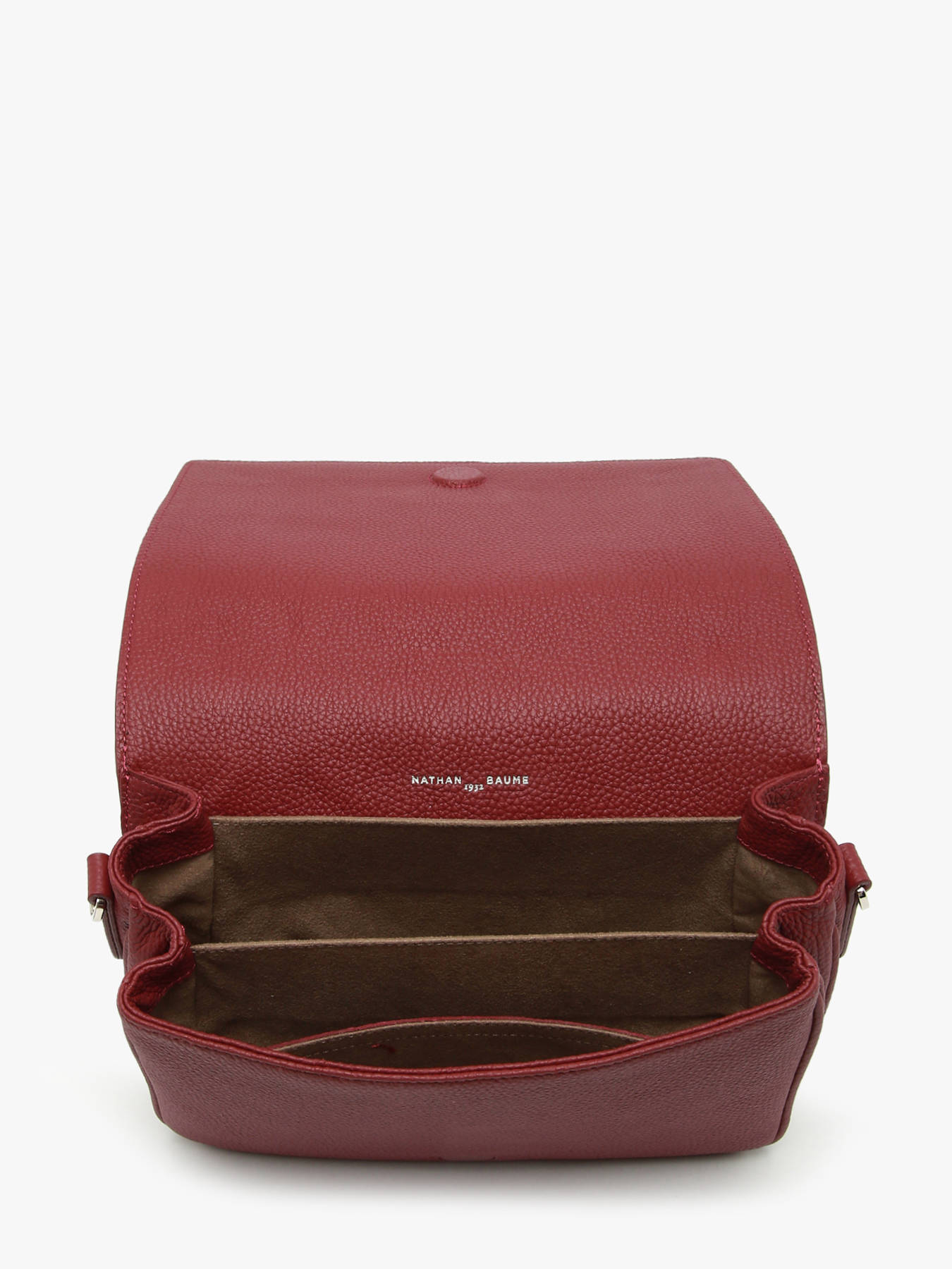 The NATHAN BAUME crossbody bag, crafted from calfskin leather, combines elegance and functionality. Featuring a magnetic flap closure, this bag ensures the safety of your belongings while providing quick and easy access. On the exterior, there is a back pocket for your essentials. The adjustable and removable strap allows for personalized crossbody wear, ensuring optimal comfort. Inside, you'll find a well-organized space with two dividers, one slip pocket, and three separate compartments to keep your belongings neatly arranged. This bag is the perfect accessory to add a sophisticated touch to your daily outfit.