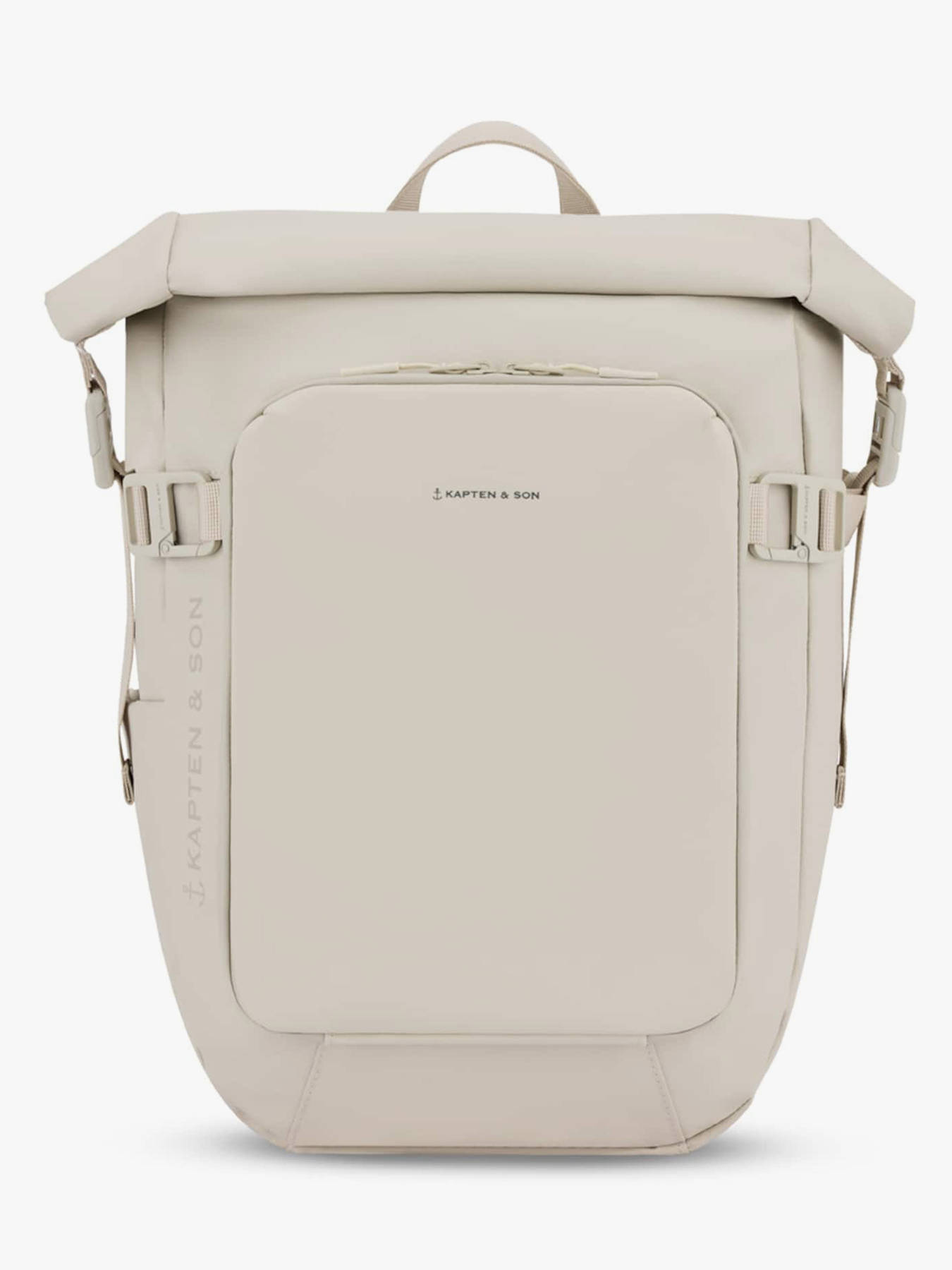 The Lisbon S by Kapten and Son is your perfect travel companion, whether for daily commutes or short getaways. Featuring a versatile rolltop design, its capacity expands from 18 to 23L, adapting effortlessly to your needs. Made from recycled PET and vegan technical fabric, it is water-resistant and eco-friendly. Smart organization meets security with a padded laptop compartment (fits up to 14""), a removable liquid pouch, and multiple storage options: an anti-theft pocket, a front pocket with dedicated compartments, a bottle holder, and a padded tablet sleeve. Designed for comfort, the padded back and straps ensure ease of carrying, while reflective details add safety on the go. With its suitcase attachment system, the Lisbon S combines functionality, comfort, and modern style — making it the ideal backpack for organized, lightweight travel.