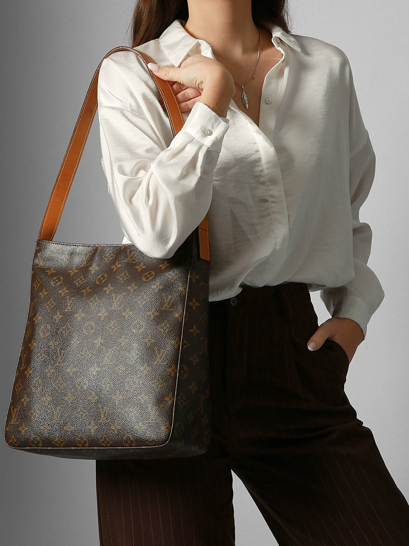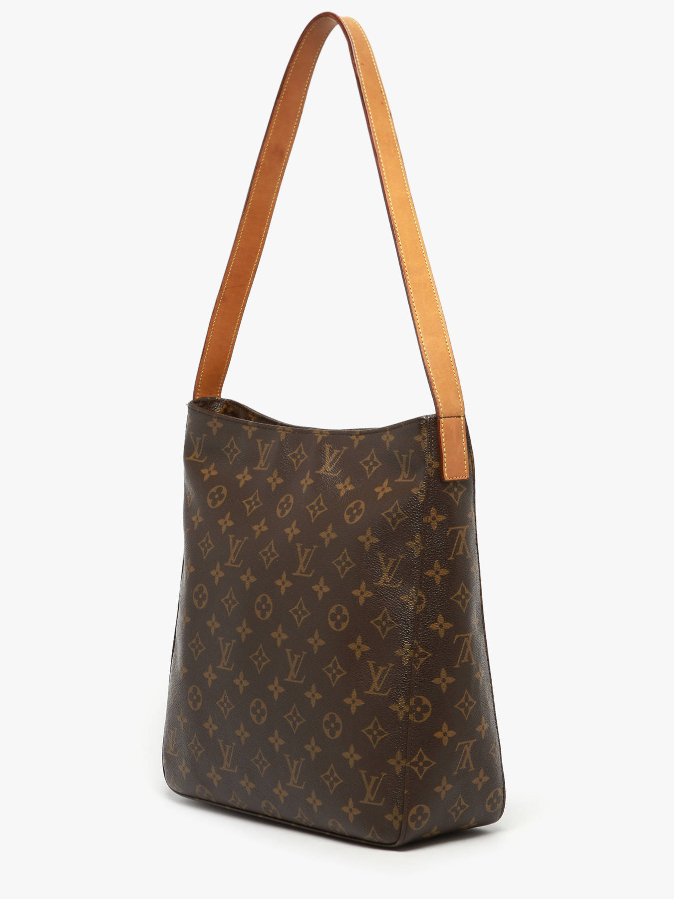The Looping GM shoulder bag from LOUIS VUITTON SECOND LIFE is crafted from durable coated canvas with leather trims, combining elegance and sturdiness. It features a zip closure to secure your belongings. With a 30 cm handle, it is comfortably worn on the shoulder for optimal ease. The interior includes one main compartment, one simple pocket, and one zippered pocket, providing practical organization for your essentials. Rated grade A/B, this bag shows signs of frequent use with marks, traces, or wear, giving it a beautiful patina that reflects a lived history. This iconic model embodies LOUIS VUITTON’s craftsmanship and timeless style, perfect for daily use combining chic and functionality.