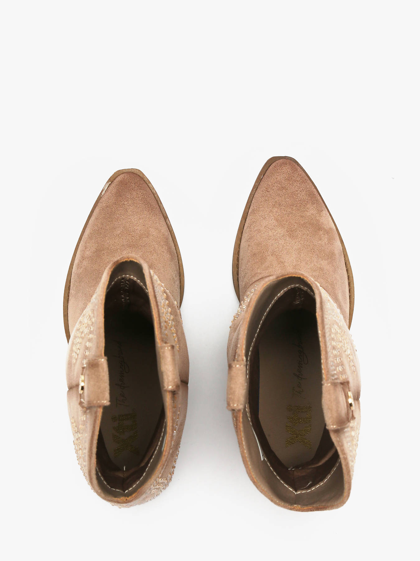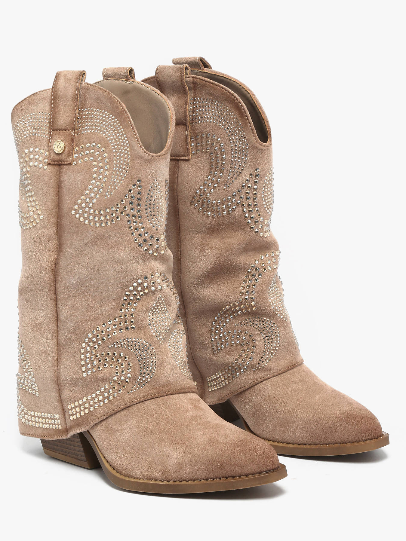 Discover the reinvented cowboy ankle boot by XTI with this women’s design available in camel or beige. Crafted from soft suede, it stands out with its elegant folded shaft and subtle rhinestone detailing, bringing refined sparkle and modern attitude. The western-inspired sole delivers bold, on-trend flair, while the 7 cm heel lifts the silhouette without compromising on comfort. Perfect for elevating both casual city looks and chic outfits, it provides stability thanks to its non-slip sole and features a removable insole. A contemporary western-style boot for confident, fashion-forward looks.