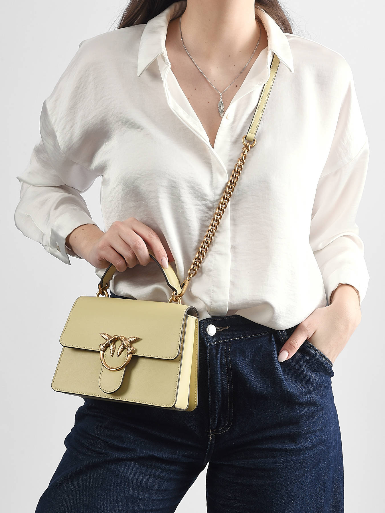 The LOVE BAG ICON PINKO handbag combines refined style with functionality for a chic and modern look. Crafted from high-quality cowhide leather, it offers a soft, elegant texture. Its flap closure with clasp secures your essentials while adding a sophisticated touch. The adjustable and removable shoulder strap allows you to carry it by hand for a classic look or over the shoulder for everyday comfort. With a handle height of 7 cm, it pairs seamlessly with any outfit. The interior features one spacious main compartment, complemented by a simple pocket and a zip pocket to organize your belongings efficiently and stylishly. Lightweight and practical, this bag is perfect for outings, appointments, or city days, making it an essential accessory for anyone seeking a balance of fashion and functionality. The LOVE BAG ICON PINKO is the perfect finishing touch for a sophisticated, contemporary look.