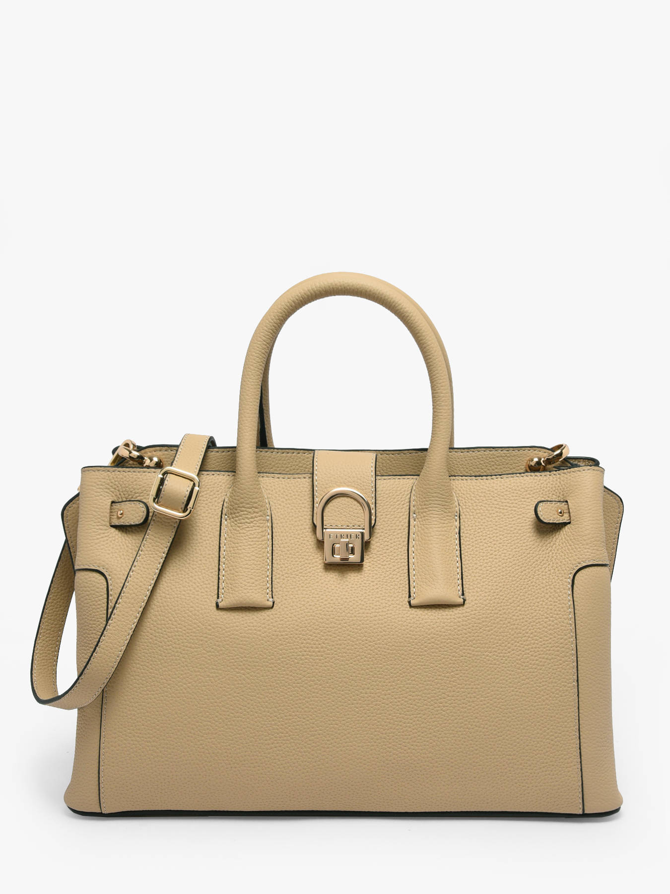 The M handbag from the EQUESTRE line by ETRIER makes a statement in its most spacious format, designed to enhance your day with remarkable elegance. Made from full-grain cowhide leather, this model is enhanced by refined gold details. The interior is cleverly organised, with a zipped pocket and two patch pockets for your personal belongings. The closure features a harmonious combination of an iconic golden stirrup clasp and a zip for maximum security. Versatile and refined, it can be carried by hand or slung over the shoulder thanks to a removable, adjustable strap adorned with carefully designed details. This prestigious bag is also available in two more compact sizes, to suit your every whim.