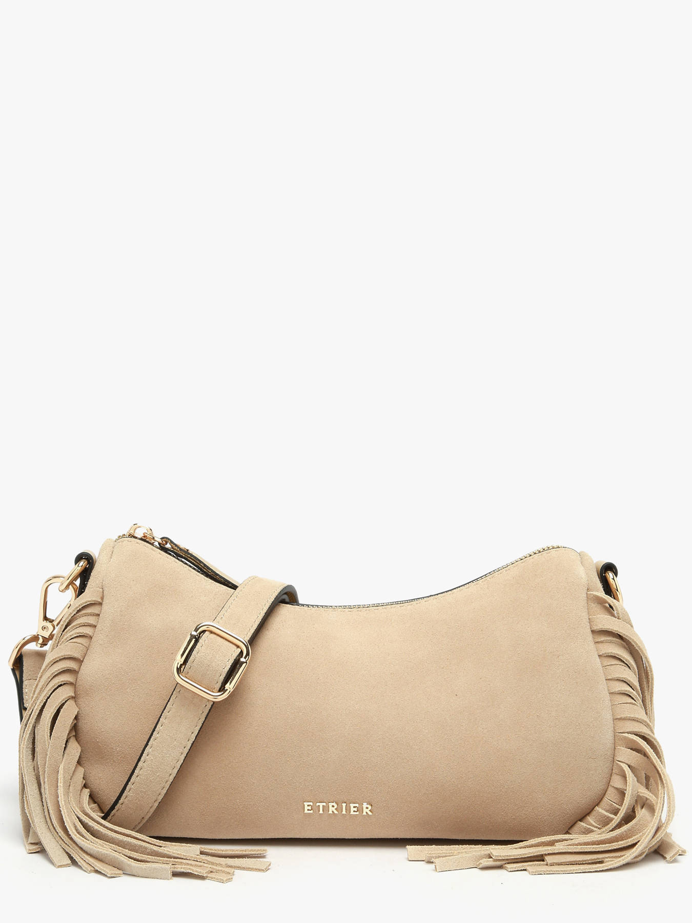 The COUNTRY crossbody bag by ETRIER embodies a free-spirited and elegant style, true to the essence of the collection. Crafted from suede leather with a smooth leather back, it stands out with its iconic fringe detailing and modern-chic look. Its zip closure keeps your belongings secure while allowing easy access. Practical, it can be worn crossbody with its adjustable and removable strap, providing optimal comfort and a versatile fit. At the back, a pocket offers quick access to essentials, while inside, a slip pocket and a zippered pocket ensure organized storage. This size S model is complemented by a larger size M version, perfect for those who want extra space without sacrificing style and functionality.