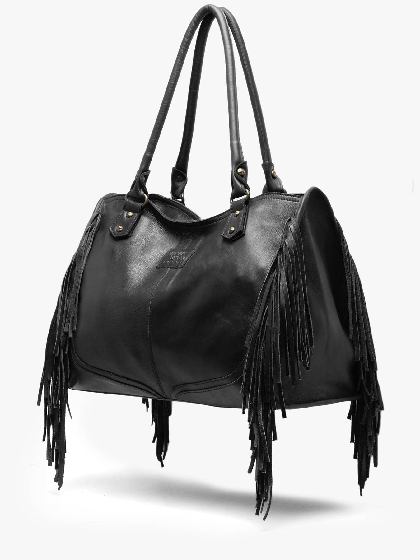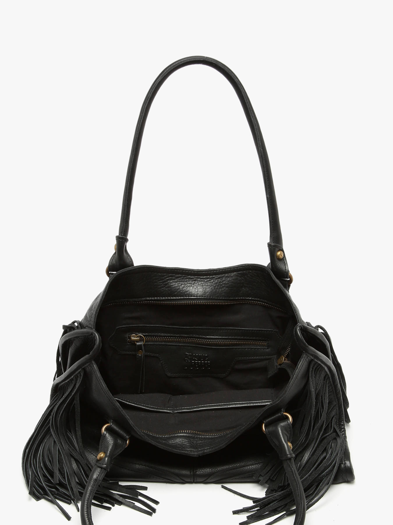 Leather lune fringe bag