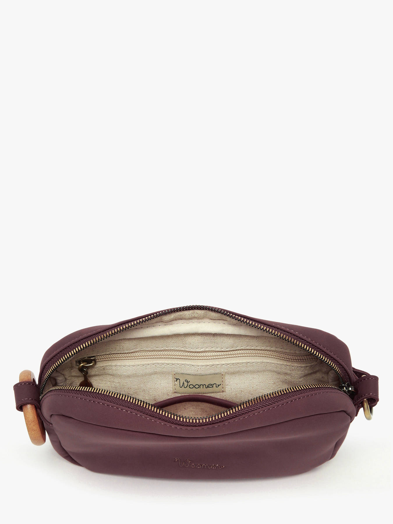 The WOOMEN crossbody bag from the HELICONIA line, in a camera bag shape, combines modernity and functionality with its subtle ring details. Made of polyurethane composed of 58% recycled materials with a cotton and linen lining, it features a back pocket, a single compartment, a slip pocket, and a zip pocket. Its adjustable strap ensures comfortable crossbody wear, making this accessory a stylish and responsible essential.