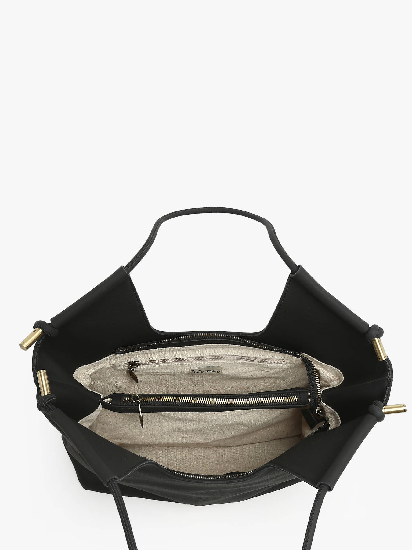 This shoulder bag from WOOMEN's MUSCARI line, made from recycled polyurethane, features a grained effect and a peach-skin feel. This large tote, designed to be worn on the shoulder, is distinguished by its adjustable drawstring detail. Its zippered closure ensures optimal security, while the interior includes a divider, two slip pockets, two zippered pockets, and two compartments for efficient organization.