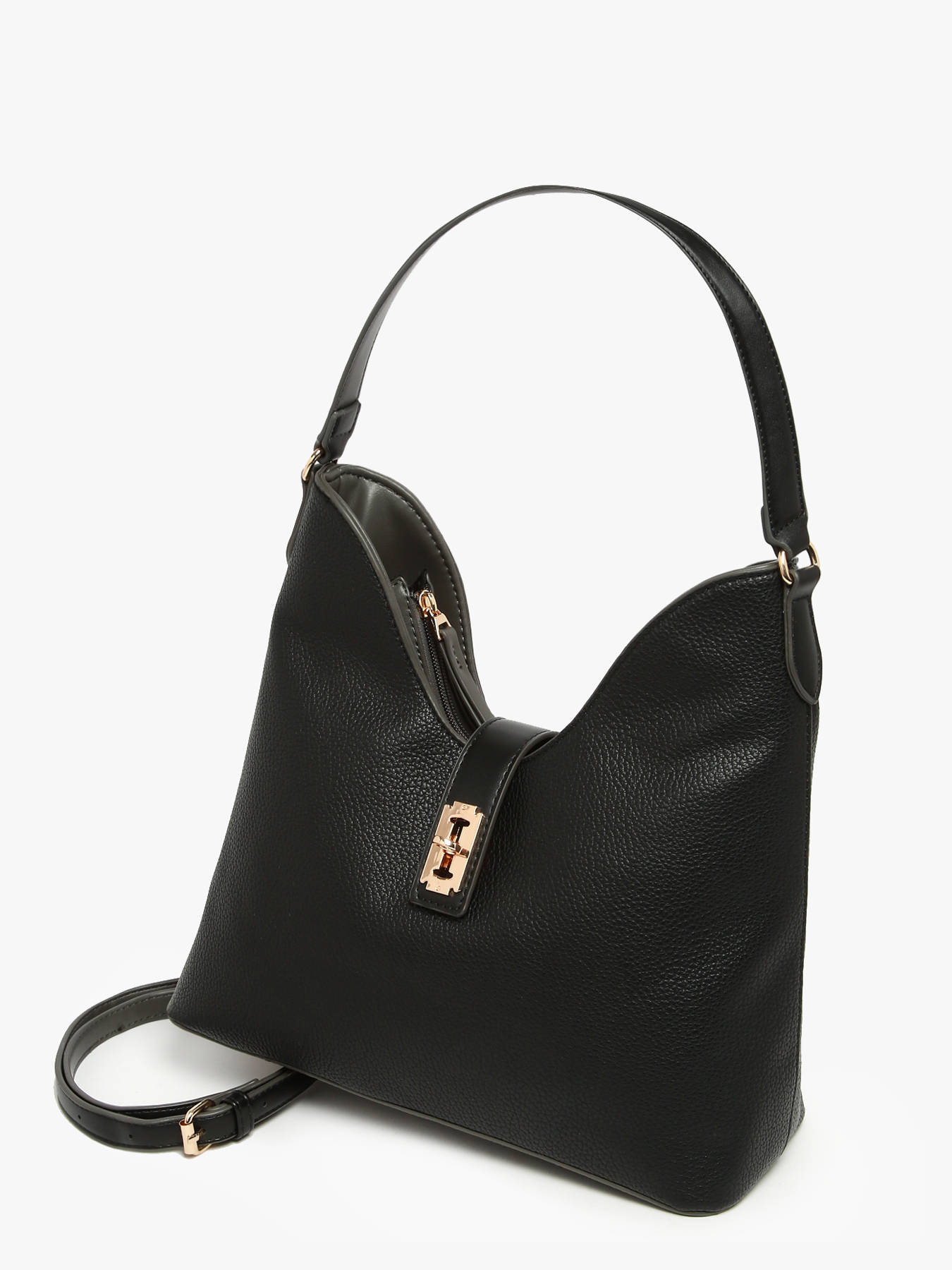 The Venise Torrow shoulder bag combines elegance with practicality for everyday use. Made from coated canvas, its durable exterior has a smooth, modern appearance, perfect for complementing any outfit. It features a flap and clasp closure, ensuring both security and easy access to your belongings. The 25 cm handle allows for comfortable shoulder wear, while the adjustable and removable shoulder strap provides the option for crossbody use as needed. Inside, the polyester-lined interior includes one main compartment, one open pocket, and one zip pocket, offering efficient organization for personal items. Lightweight, practical, and stylish, the Venise Torrow bag stands out for its refined design and functionality, making it a versatile and essential accessory to accompany your day with comfort and sophistication.