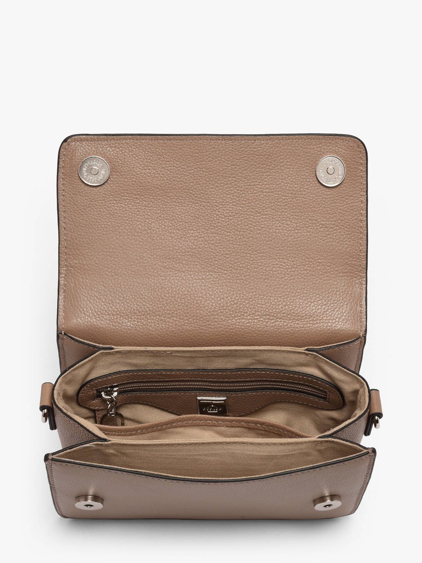 The ETRIER crossbody bag from the ALTESSE line, in a medium size, is crafted in cowhide leather. At the back, there is a flat pocket. It features a wide, removable canvas shoulder strap embroidered with the tonal ETRIER logo, as well as a leather handle. The flap closure, adorned with the iconic metal stirrup emblem of the house, secures with a press stud. Versatile, it can be worn over the shoulder or carried by hand. Inside, discover a leather key holder, a compartment with a flat pocket, and a zippered pocket for optimal organization. Available in various seasonal colors, as well as in larger and smaller sizes.