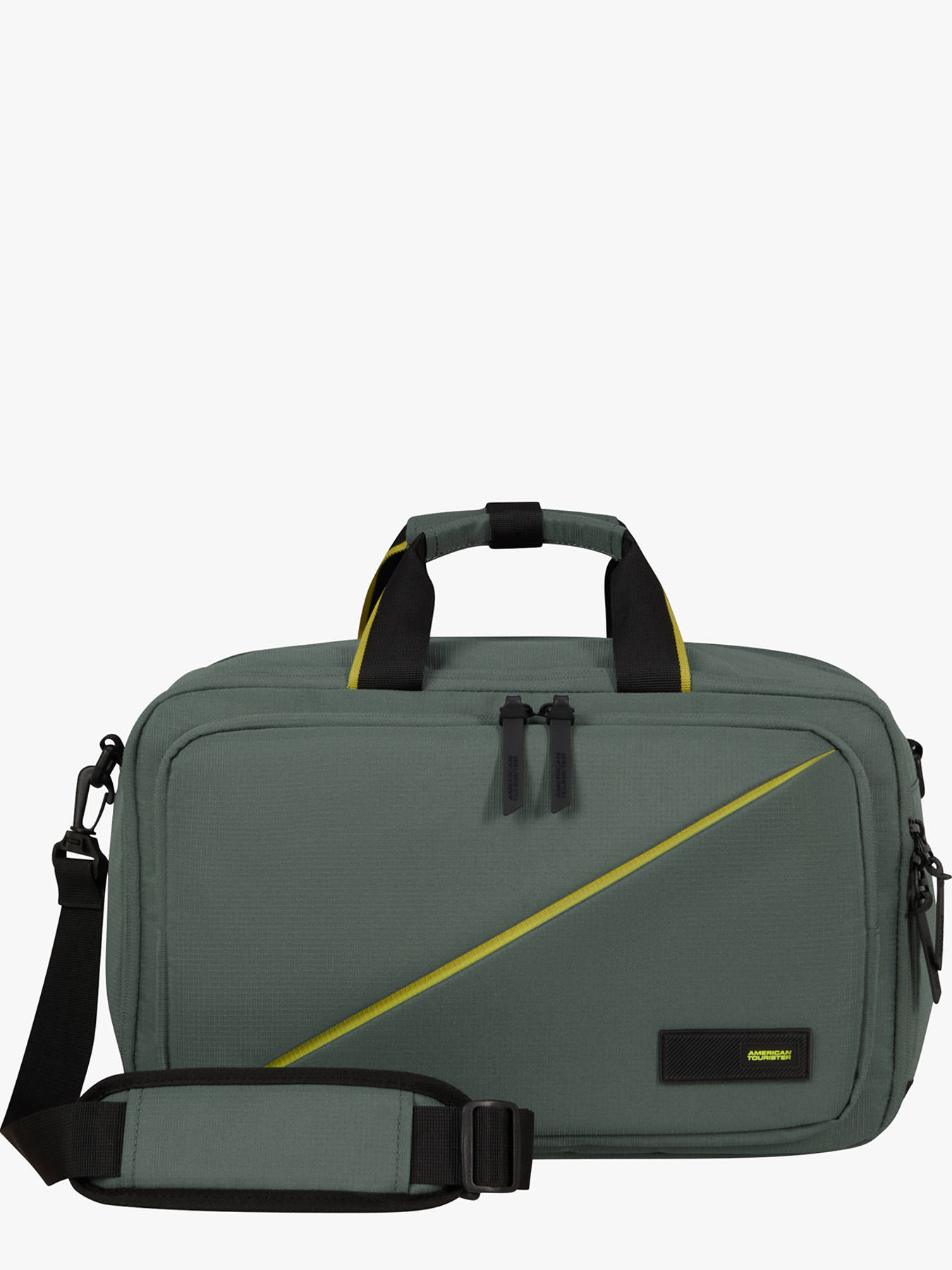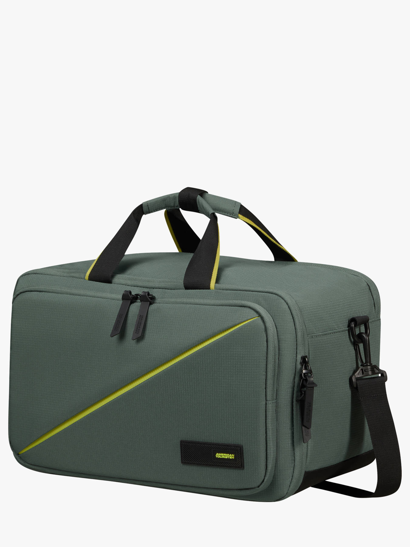 40 cm - 25 liters - 0.6 kg ~ Looking for a smart, lightweight, and stylish travel solution? The Take2Cabin 3-Way underseat bag by American Tourister is built for everyday adventurers and savvy budget travelers. Made from recycled ripstop polyester, it’s durable, light (0.5 kg), and offers 25 L of capacity in a compact 25 x 40 x 20 cm format—approved for underseat cabin use on EasyJet and Ryanair. This versatile bag offers three carrying options: by hand, over the shoulder (with removable strap), or as a backpack thanks to stowable padded straps. A fully padded rear compartment fits a 15.6” laptop and tablet, while the main compartment features elastic straps to secure clothing. A front organizer pocket keeps essentials within easy reach. With a reinforced base, inverted zippers, and trolley sleeve, it’s the perfect compact bag for organized, efficient travel. 2-year warranty.
